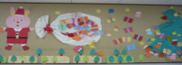 学校の北校舎の体育館側通路の掲示板に折り紙等で季節に応じた飾りを作成していただき、掲示しています。