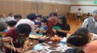 今年で3年目の開催となり、参加人数が120名を超える盛況です。手づくりをメインに身近にある材料を使用して作品を作り上げます。竹や皮、広告の紙や空き缶や空き箱を材料に作っていきます。講師は、地域の方々にお願いし、場所を提供しています。出来上がった作品は、夏休み明けの「校内の作品展」に展示しています。