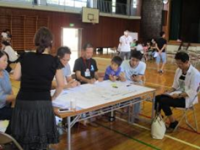 市内の喜志中学校区、葛城中学校区の方々を金剛中学校にお招きして、避難所運営シミュレーションを実施した。本校区の役員がレクチャーする立場にまわり、研修を深めた。