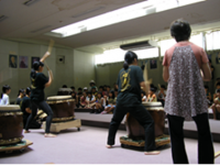 今年で9年目になる夏休みの活動で、小学1年から中学生までの60名近くの異年齢の子供たちが同じ時間、同じリズム、同じ質の和太鼓練習を同じ場所でして、どの学年もそれぞれの年齢(力)に応じた、堂々とした発表をします。