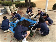 五月丘小学校、渋谷中学校ともに大阪府の「花いっぱいプロジェクト」の卒業校ですが、地域コミュニティ推進協議会や地域の方の協力を受けながら実施しています。