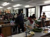 また「北中校区アドベンチャー教室」では、校区の幼稚園児、保育園児、小・中学生と保護者、地域の方々が、園芸高校内で剪定された木や葉、蔓、木の実などを使ってクリスマスリースをつくりました。