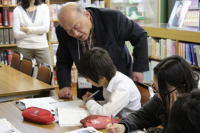 月に一度、土曜日に開催しています。「おもしろ算数教室」「ひろこ先生の英語教室」「バスケットボール教室」「こくごきょうしつ」、そして「図書館開放」と「お話タイム」などのプログラムがあり、地域の方々や保護者のみなさんのご協力のおかげで、子どもたちが楽しく学んでいます。卒業生の中学生もお手伝いに来てくれます。