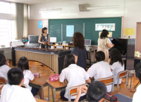 6月26日(金曜日)2・3時間目を利用し6年生4クラスを対象にマリンバコンサートを行いました。演奏者はマリンバは濱田智子先生、ピアノ演奏は小椋満子先生で、マリンバの構造・歴史についてのお話もしていただきました。