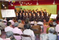 本校の1年生が、校区内の老人ホームを訪問して、お年寄りと交流した。合唱をしたりし、「これからも元気でいてください。」等を書いたメッセージカードを渡した。