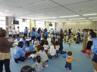 最初は、お互いぎこちなかったですが、時間がたつと共にあちこちに遊びの輪ができてきました。人見知りをして泣いてる子もいましたが、たくさんの笑い声も聞こえました。参加された方が「普段泣き虫さんの娘が、中学生のお兄ちゃんお姉ちゃんに抱っこされたら、ニコニコ笑ってくれていたので嬉しかったです」と感想を書かれていました。この体験で、ふれあった乳幼児を通して、命の重さや保護者の愛情に改めて気付く良い機会になりました。