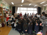 八雲中学校・八雲小学校・下島小学校ではそれぞれボランティアにより図書室を開室しています。また、八雲小学校では、本年度から木曜朝の読書の時間に担任の要望に応じて学級に読み聞かせボランティアさんに入っていただいています。とても希望が多く、現在7名が家事や子育て、仕事等で忙しい中活動しています。それぞれ学年や教科書や季節に合わせた選書をして子ども達に,より本に親しんでもらおうと努力して下さっています。3学期末にはボランティアさんの発案で、あまり図書室に来ない児童にも来てもらうように読み聞かせ担当者と図書室開放担当者が協力して図書室で「クリスマスおはなし会」を開きました。下島小学校では、図書室にて読み聞かせをしています。
