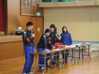 毎年恒例の五中校区地域教育協議会主催の行事の「たこあげ・ゲーム大会」が今年も、1月27日(日曜日)に鳥飼小学校及び淀川河川敷公園で開催されました。第五中学校の生徒37名がボランティアのスタッフとして参加し、午前中、鳥飼小学校の体育館で地域の方々と共に小学生たちにたこの作り方を丁寧に指導しました。和紙と竹ひごを使って作るのは初めての人が多かったようですが、みんな一生懸命自分の凧を作り、思い思いの絵を描いて凧を完成させました。お昼には地域の方々が用意してくださった豚汁とお餅をいただき、午後からは第五中学校生徒会の生徒の司会進行によりビンゴゲーム大会を行い、その後、淀川河川敷公園へ移動し、作った凧をみんなであげて楽しみました。風も強く、絶好の凧あげ日和でした。地域の方々、保育園児、小学生、中学生が楽しくふれあえるイベントとなりました。