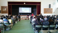 大地震の発生を想定して、防災意識の向上と、具体的に避難所運営の訓練を行っています。ここ数年、避難訓練と啓発の防災士による講演会、今年度は8月には避難所で泊まる訓練を行いました。そして、2月に静岡県が作成した避難所運営体験ゲーム(HUG)を実施しました。