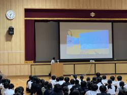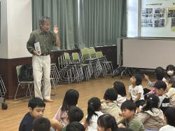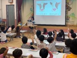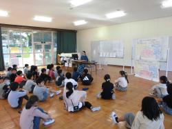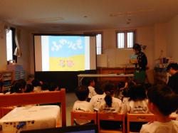 おかだ先生が話を始められると、子どもたちは話に引き込まれ、相づちを打ちながら聞いていた。また、写真を見せながらお話しくださったので、子どもたちは魚等を実際にイメージしながら聞くことができた。