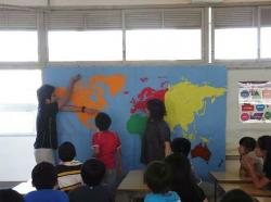 児童の学習活動においては、毎週金曜日、5、6年の外国語(英語)活動の時間に、地域のボランティアの先生が外国語活動の支援員として来ていただいております。