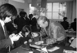 図書館支援ボランティアの方々には、平成22年11月1日と4日、『憩いの教室』にお集まりいただきました。傷んだ本の修復作業や図書室前の掲示版の環境整備にご協力いただきました。