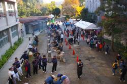 12月5日に恒例の「もちつき大会」がありました。これは形を変えながら校区で約30年も続いている、地域の子どもたちのための重要な行事になっています。近年では野畑小PTAが中心に進めていますが、毎年実行委員会を立ち上げ、地域の25団体が協力団体として準備から当日の運営まで行っています。現在は、この行事を学校地域支援事業として位置づけています。ボランティアでこの行事に関わっていただく方は延べ600名おられ、年齢層もご高齢の方から若い保護者の世代まで様々です。
