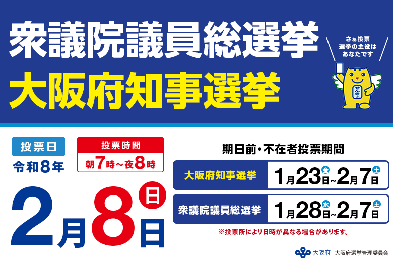 大阪府知事選挙:1月23日(金曜日)~2月7日(土曜日)